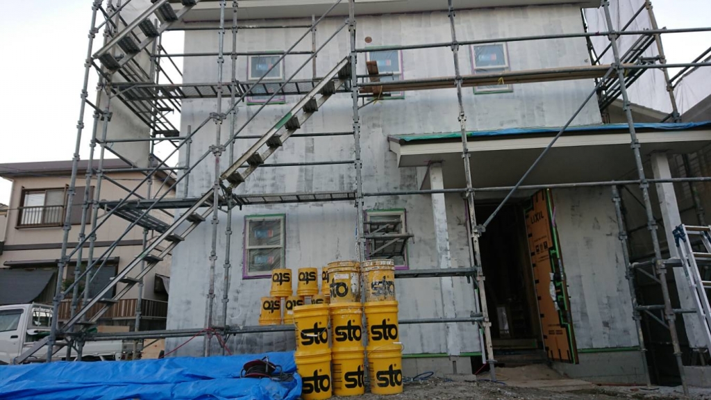 JUGEMテーマ:注文住宅 M様邸の外壁の下地が完成しました。 明日から撥水仕上げSTO塗りです。 真っ白いかわいいお家ができます。