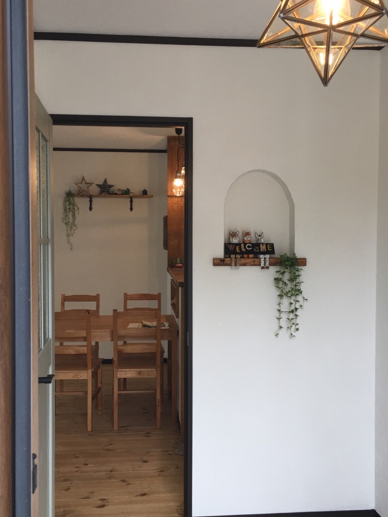 JUGEMテーマ:注文住宅 I様邸をカメラマンの方に撮影してもらいました。 LDKからキッチン ダイニングにニッチもかわいい お気に入りの星形照明器具がお出迎えします