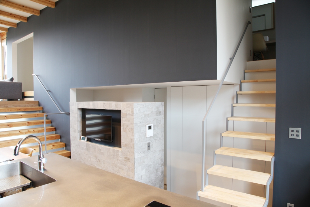 こんにちは。 もうすぐ大型連休ですね。お天気がいいようなのでお出かけになる方は予定が立てやすいのではないでしょうか。 さて、本日ご紹介するお宅はこちら。 お家の中心にキッチンがあるお宅です。 お写真左手の階段を上るとリビングが、右手の階段を上ると寝室などがございます。 キッチンの両側(お家の両側の壁)が大きな窓になっていますので、家じゅうがたいへん明るいお宅です。 高低差、階段等の工夫だけで、部屋を仕切る壁がなく...