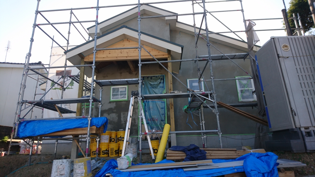 JUGEMテーマ:注文住宅 E様邸の外壁作業です。ベースコートとメッシュの塗り込が終わり、プライマー作業中です。 いよいよSTO塗り作業をします。楽しみです。 ベースコート完了(壁に目地がありません) 玄関を除いてプライマー作業が終わりました。