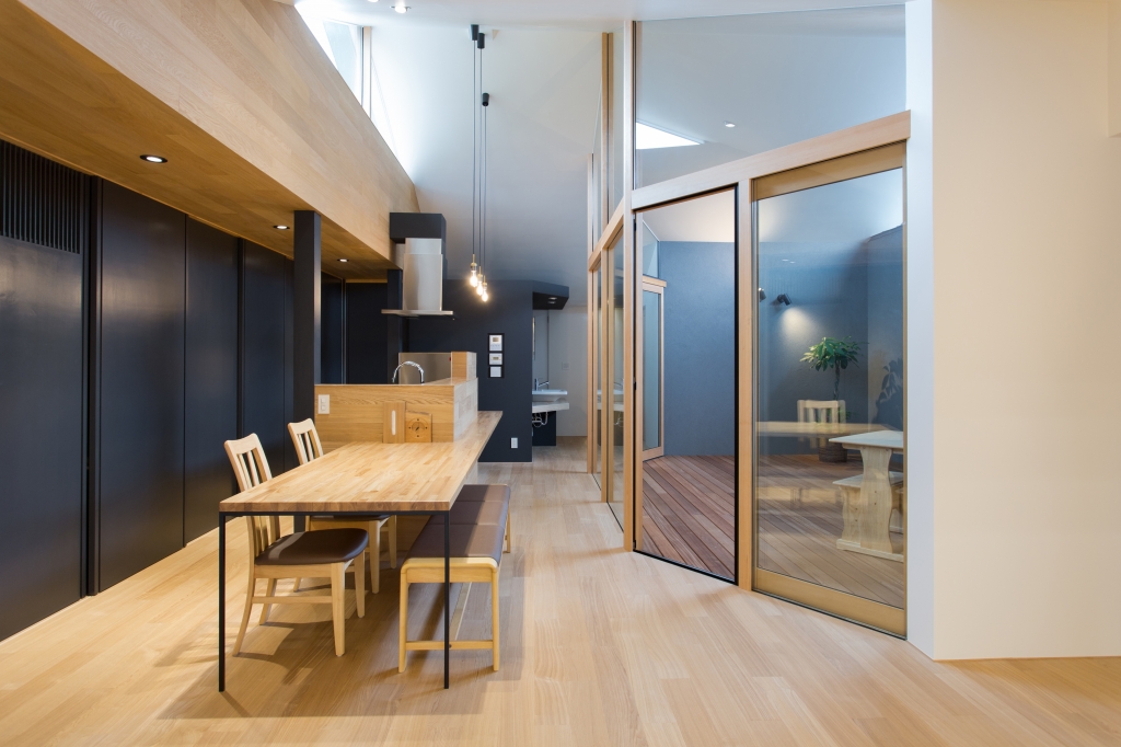 こんにちは。 台風も過ぎ、本日は晴れています。 皆様のお家は無事でしたか?被害にあわれませんでしたか? お家の損傷、破損でお困りの場合も、弊社にご連絡ください。 さて、本日ご紹介するのは前回ご紹介したお宅の内部です。 (前回→★こぼれる灯り) とてもシックなダイニングキッチンですね。 左上に見えるとんがり屋根のガラス窓から外光が入るので、お昼は明るく、夜はこのガラス窓からこぼれる灯りが素敵です。 ガラス窓で仕切られてい...