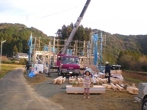 JUGEMテーマ:注文住宅 2008年12月25日、無事に上棟式を終えました。 左の写真は、上棟式当日の午前中の様子です まだ屋根なんかできていなくて、いつもよりたくさんの大工さんが 「カーン、コーン」と大きく響く良い音をたてながら 一生懸命作業してくださっていました。 午前中は、10時の休憩用にお菓子とコーヒー・お茶類を届けて、 私達はご近所へあいさつまわりに行きました。 小さなお饅頭が30個入ったものを、 同じ組の15軒のお宅と自治会長さんのお宅へ持って行き、 工事でご迷惑をおかけすること...