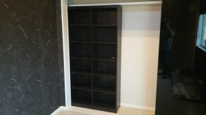 今度の部屋には、本棚が無い。 作り付けの本棚の利便性の悪さと費用の高額さゆえに諦めたとも言う。 とりあえず後でなんとかしようと作ったのがこの収納。 奥行30cmしかない収納だ。 作ったは、いいけど幅があり過ぎでビス止めの収納をくっつけることができなかった。 そこで近所のスーパービバホームでこいつを買って組み立てて設置した。 うん。収納にぴったりと入った。 よくもこれだけぴったりの物があったと思う。 ...