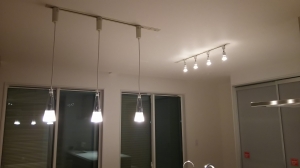 ウッドデッキなんとかなりそうです。多分。 ま・・・・木曜日の朝から外構屋さんの営業さんに電話して平謝りだし。 夜には、照明設置で行った時にも職人さんに平謝りだし。 もう。。。。引渡終わってもまだ終わりませんな。 そう言えば明日やっと玄関前にコンクリートがながされそうです。 なんとか予定通りに引越しだけはできそうです。 外構は、12月まで続きますけどね。 さて。 リビングに照明を設置しました。 っと言っても...