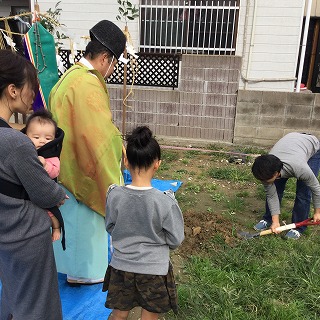 JUGEMテーマ:注文住宅 こんにちは由美です。 今日は小倉北区のT様邸の地鎮祭。 お天気予報とにらめっこしていましたが 今朝、雨がパラパラ降ってきて 大変!! 大変!! テントの準備よ。 急いで急いで!! 慌てていたのですが お天気も良くなって 暖かな地鎮祭になってT様よかったですね。 神主様にお祓いをしていただきまして 床鎮めの儀:お家のお守りを土の中に...