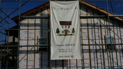 JUGEMテーマ:注文住宅 今週ブログ担当の二郎です。 “Mamanおおすみ”の養生幕ができました! いつものMamanのデザインを使ってます。 わかり易くていいですね! JUGEMテーマ:注文住宅 鹿屋のS様邸で、まずお披露目です! 工事も着々と進んでおります。 年明けにはオープンイベント企画中です!お楽しみに ブログの苦手な二郎としては、今日はこのくらいで許してもらぉ〜っと。。(独り言デス)