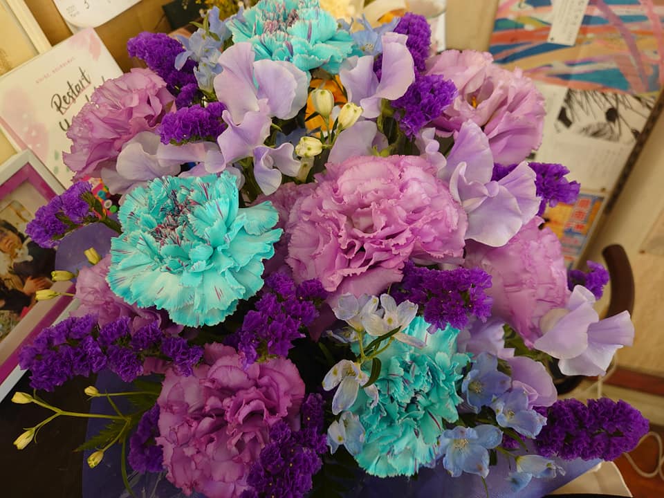 エフエムびざんの人気番組、B-STEP TALKINGに 急遽ゲスト出演しました♪ フルールアベの阿部さんがお花屋さん目線 そして私が、男性のお客様目線で色々とお話させて頂きました。 本当に突然でしたが凄く楽しめて良い経験になりました。 パーソナリティの堀部貴子さんにお花もお贈りしました♪ 堀部貴子さんの大好きなインディゴブルー 堀部貴子さん、フルールアベの阿部さん 本当にありがとう...