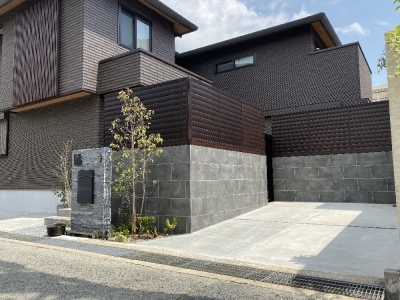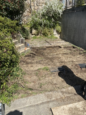 先日に引き続き、尼崎市のオープン外構のご紹介です。 ここは駐車スペースです。 ピンコロ目地を設置して、ワイヤーメッシュを敷いているところです。 オープン外構ですが、庭と前回ご紹介したデッキ部分はクローズになっています。 内側から見た仕上がり写真です。 庭とデッキは、外から見えないプライベート空間になっています。 樹は、イロハモミジ、ソヨゴ、アオダモ、ヒメシャラなどです。 「季節を感じたい」と落葉樹もたくさん入れていただけました。 外...