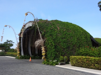 バリ島の研修旅行の続きです。 今日は、アプルバケンピンスキーのご紹介です。 ケンピンスキーは日本にはないホテルなので、 私も最初は??だったのですが、ドイツの高級ホテルで 世界中に展開しているそうです。 アプルバケンピンスキー・バリは2019年2月にオープンしたばかりの 新しいホテルです。 入口です。 ここにもペンジョールが飾られていますね。 このアーチトンネルを抜けると…セキュリティチェックを受けます。 ここに泊まっているわけではないので、「カフェしたい...