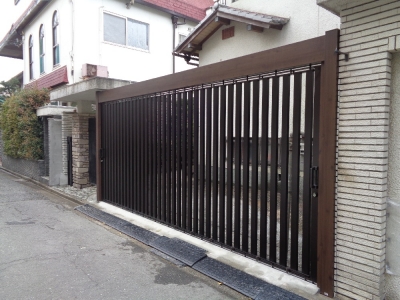 22日にご紹介した神戸市のリフォームの完工編です。 三協アルミさんのスライディングゲート「ライアーレ」です。 ライアーレは、左右どちらからでも開閉可能なダブルオープンタイプです。 ですので、両側に取っ手がついています。 枠は木調のトラッドパイン、戸はダークブロンズ色です。 門の左側には機能門柱をつけました。 YKKさんのルシアスポストユニットです。 これは、お打ち合わせの時に使ったパースです。 パース通りに仕上がっていますね。
