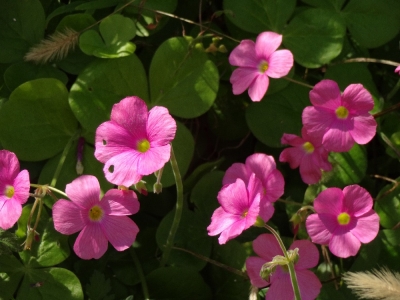 最近、いいお天気が続いていて、気持ちいいですね。 寒いのが苦手なので、今の季節は大好きです。 今日は、近所で咲いていたお花のご紹介。 ハナカタバミです。 カタバミ…といえば黄色い小さな花が咲き、抜いても抜いても広がっていく あのカタバミを思い浮かべますが、こちらのカタバミはきれいですね。 秋に咲く多年草で、南アフリカ原産ですが、日本には江戸時代には もう伝わっていたそうです。 葉っぱも三つ葉でかわいらしいです。 ハギです。 秋の七草の1つ...