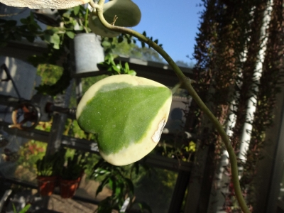 先日、北山緑化植物園の温室でかわいい植物を見つけました。 ハートの葉っぱです。 何だろう?と見上げると… こんな感じで天井から吊り下げられ、ツルが目線の高さまで 伸びてきていました。 ハートホヤです。 ラブラブハートとも言うらしいです。(すごい名前ですね) 雑貨屋さんとか、百均でもハートの葉っぱが1枚だけブスっと 小さな鉢に入って売っているのを見たことありませんか? 特にバレンタインの時期になるとよく見かけます。 タイ原産の多肉植物です。
