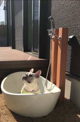 今日は、2月28日にご紹介させていただいた、 宝塚市のセミオープン外構のお庭部分のご紹介です。 お庭の写真も、以前に一度アップさせていただいているのですが、 施主様が送ってきてくださった犬の写真があまりにもかわいかったので、 もう一度載せさせていただくことにしました。 ペットバスに入っている写真です。 めちゃくちゃかわいいですね。 商品はニッコーのペットバスとシャワープレイスレヴウッドタイプです。 全体写真です。 広々デッキの上で、楽...