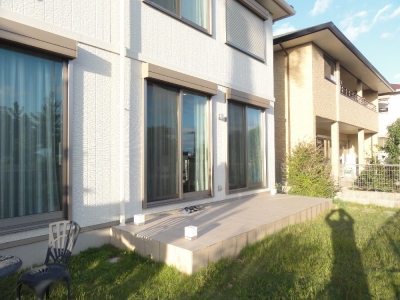 今日は、先日お引渡しした芦屋市のガーデンルームのご紹介です。 まずは、ビフォー写真です。 タイル貼りのテラスがあり、その周りは芝生でしたが、 芝の管理がたいへん、とのこと。 リクシルのガーデンルーム、ココマ?の腰壁タイプを設置することになりました。 腰壁部分は、コンクリートブロックです。 上の写真はモルタル下地を塗っているところです。 既存のタイル貼テラスを残し、広げることになりました。 腰壁部分にタイルを貼っています。...