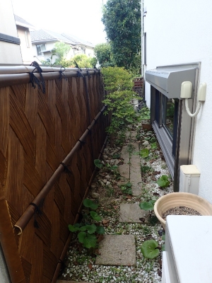 今日は、先月お引渡しさせていただいた芦屋市のガーデンリフォームの ご紹介です。 和室の地窓前のお庭のビフォー写真です。 雑草が生えて困るとのご依頼でした。 延石と敷石は残して、コンクリート下地をしました。(左写真) 洗い出しの完成です。(右写真) この洗い出し、タカショーのネットストーンを使っています。 300mm×300mmのシート状になっています。 ネットストーンの「雲彩(うんさい)」です。 ネットに砂利が貼り付けられてい...