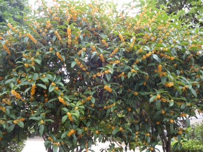 家の近くに公園があるので、玄関を開けるとキンモクセイの香りがします。 こんな感じで咲いています。 キンモクセイの香りをかぐとノスタルジックな気持ちになる人が多いそうです。 確かに、この香り、懐かしい気持ちになりますね。 嫌いな人も多いそうですが、私は秋を感じて好きです。 特に夜には香りを強く感じます。 キンモクセイは中国原産で、中国では「丹佳」や「佳花」と呼ばれています。 中国の「桂花陳酒」は白ワインにキンモクセイを3年間漬け込んで作るそうです。