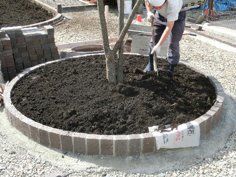 今日は朝から気温が高く半袖で丁度良い暖かさでした。 今日の作業はレンガの目地と黒土の搬入 そして明日の生コン打設予定の養生と高さを再度確認しました。 JUGEMテーマ:エクステリアガーデン 168
