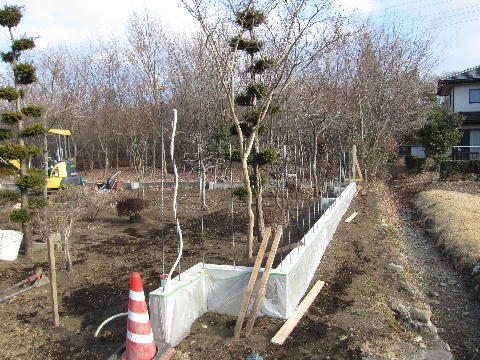今日は午後は雨が降ってきたので午前中だけ作業をしました。 出入口右側のコンクリート基礎の周囲を油圧ショベルで埋め戻します。 埋め戻し前、基礎が汚れないように養生フイルムシートで養生しました。 出入口左側も同じく養生と埋め戻しをしました。 今日最後の作業は既存のコンクリート基礎にケミカルアンカーで鉄筋を固定しました。 北側と西側のブロック塀は既存のコンクリート基礎を利用します。 JUGEMテーマ:エクステリアガーデン 168