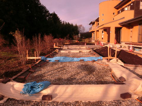 今日は朝から快晴でした でも、さむ〜い一日でした 最高気温は3.2度、(アメダス 那須塩原市埼玉)でした。 今日は細かい部分の工事をしました。 【場所 】栃木県那須塩原市S様邸 午前8時に作業開始です。 コンクリート土間が仕上がる高さより100mm程低なってしまうので、 メーターボックスなどを嵩上げ(かさあげ)します。 嵩上げ用の部品を取り付けている様子です。 メーターボックスの嵩上げが完了しました。 止水栓の蓋の部分も嵩上げします。 100mmの嵩上げが完了しました。 化粧砂利...