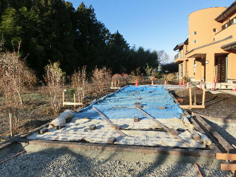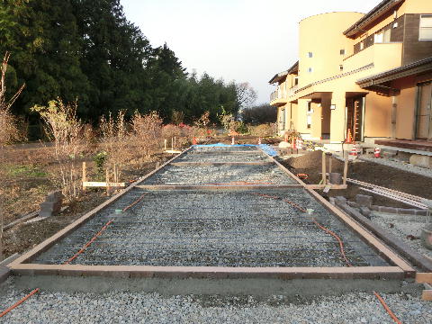 今日の現場は、栃木県那須塩原市S様邸の外構工事です。 朝から雲が殆ど無い快晴でした。 那須の山々は寒気の影響で、雪を纏っています。 午前8時に作業開始です。 今日の主な作業はレンガの目地と配筋作業です。 モルタルを目地に充填し、目地鏝(めじごて)で仕上げます。 1回目の生コンを打設する準備をしています。 写真は配筋作業中 お客様宅の出入りに支障が出ないように、数日(数回)に分けて生コンを打設します。 地中埋設型照明を設置ので、事前にコンクリート埋設用に使われるCD管を準備していま...