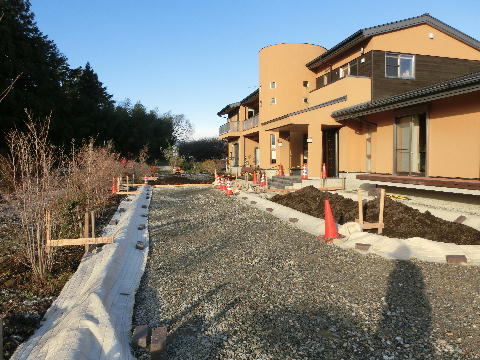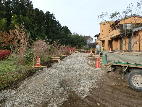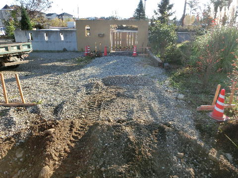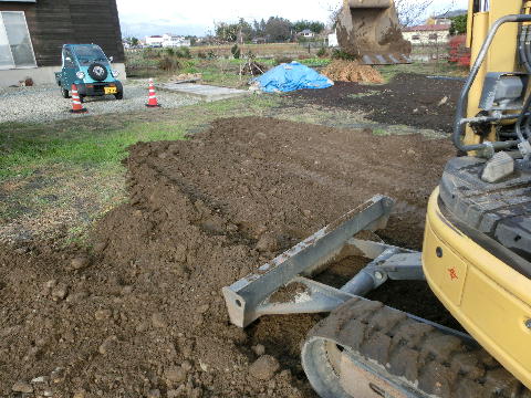 今日は栃木県那須塩原市S様邸です。 朝から穏やかな天気でした。 山茶花(さざんか)の咲く季節ですね〜。 午前8時に作業を開始しました。 掘削で搬出された残土を整地する作業からはじめます。 残土の整地作業が完了しました。 工事が始まってから3台目の黒土を搬入します。 大型ダンプカー(10トン)で搬入しました。 植栽スペース(芝生を予定しています)に黒土を入れます。 黒土をショベルカー(コマツ PC27MR-2)を使ってダンプカー(2トン)に積み込みます。 植栽スペースに黒土を搬入します。 ...