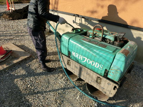 今日は勤労感謝の日だったんですね〜 現場は栃木県那須塩原市S様邸です。 作業しやすい気温でした 午前8時に作業開始です。 転圧機(振動ローラー)のタンクに水を入れます 振動させながら転圧していきます。 散水しながらゆっくり転圧します。 ウッドデッキ前を転圧しています。 狭いので建物等に接触しないように、注意して作業を進めます。 重量は約700kgあるので方向を変えるのに力が必要です。 コンクリートの駐車場になる予定の場所も転圧します。 不陸調整を行いながら転圧作業を進めます。 不陸調整...