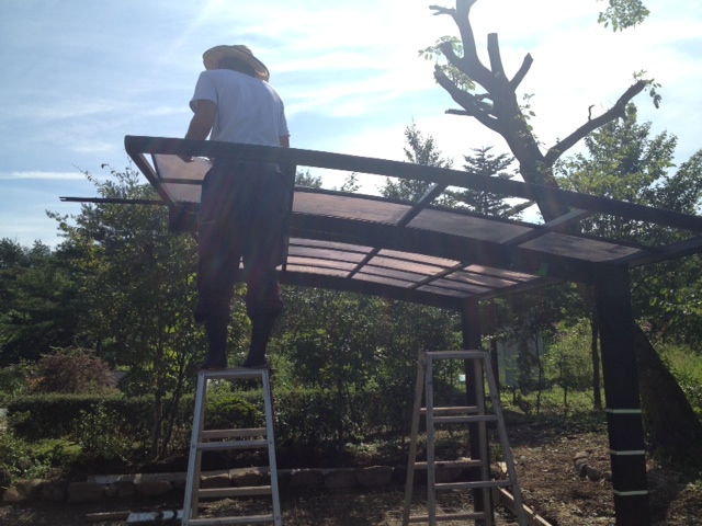 昨日、洗浄したカーポートの屋根パネルを取り付けます。 カーポートの洗浄と復旧はこの後に水拭きをして完了です。 後日、カーポート下の土間をコンクリートにします。 コンクリート土間上にある立水栓の下から伸びる排水パイプを排水枡に接続します。 排水枡の蓋と地面の高さが平らになるように高さをあわせます。 排水枡の設置は完了です。 【物置販売・エクステリアのイーネクス】 JUGEMテーマ:エクステリアガーデン