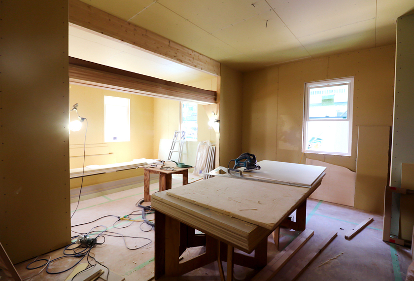 潜入してきました。いつもスネークに任せっぱなしなので、現場は新鮮です。 リビングとダイニングの境目、なんと言えばいいのかわかりませんがコレのことです。コの字を左に回転させたゲートみたいなやつ。 ぶっとい巾木と適度なモールディングを這わせて、例えるならガチ勢です。これは最初の打ち合わせの頃から妥協できないカテゴリに入れていた部分なので、妥協しないままここまできました。当初、スネークは「巾木が細いのと太いのでどういう良さの違いが出るのか...