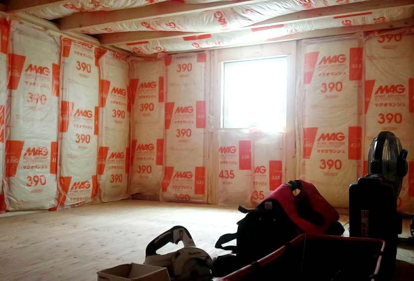屋根裏部屋ですが断熱材SUGEEEEEEEEEEEEE 上の三角の部分までラップサイディング仕様です。三角部分は普通のサイディングで色塗るだけでも問題ないのですが、その場合ちょっと可愛い感が増す。全体をラップサイディングにするとかっこいい感が増す。例外としては、ホワイトハウスのような真っ白な建物であれば三角はべた塗りでも超絶かっこいいと思います。 三角部分、よく見ると途中で止まってる。「サイディングボード足りんかった、追加発注しゅ...
