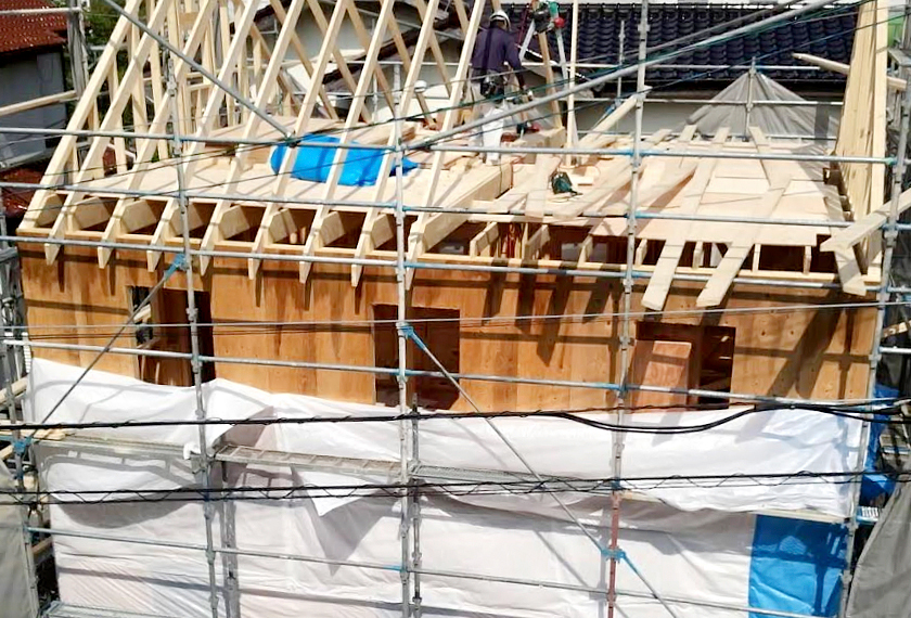屋根キタ 台風も無事去って、これからはガンガン作業が進むことでしょう。外観へのこだわりは、前回書いたシンメトリーだけではなく、屋根の向きも然りです。正面から見てさんかくにならないよう、窓の枠や玄関枠と平行して屋根も平行になるようにしたかったので、そのような仕様になりました。ようするに、こうじゃなくてこうしたよという意。家というよりも、公共の建物っぽさを出したかったのでそうしました。そうすることでクラシックまたはモダン寄りになって、逆に表三角にす...