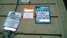 お家を見つけるのは、どうしたらいいのか・・・ まずは、不動産屋さんにお願いするのが一般的ですが やはり、口コミ社会が根強いイタリアでは友達に聞いたり 知人に聞いたり、はたまた遠い親戚(本当に血縁関係ある?っていう位・・・)の お家を買ったり・・・ 最近では、インターネットにも出るようになりましたがまだまだ一般的ではないのがビックリ。 でも、一番いい見つけ方は・・・ 歩く!!ひたすら歩く!!! なんです・・・ というのも、建物の入り口に売り物件情報が貼り出してあるんです。 こんな感じ...