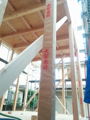 5月10日に上棟式を行いました。 前日までは基礎しか無かったのに、当日だけ(朝7時半くらいから始めたのでしょうか?)で、15時には組みあがっちゃうもんなんですね。家が小さいから????(^_^;) 子供の頃、僕の実家の方では、上棟式で餅まきが行われていましたが、今じゃほとんど見かけません。 お金もかかるし、田舎みたいに広い敷地に建設じゃないと、周りの家に迷惑も掛かりますしね。 最近は、上棟式はやらない家も増えてきているようですが、きちんとやっておきたいなと...