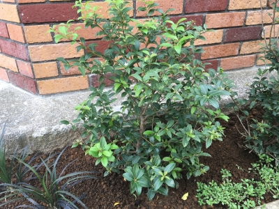 撮影日 :2016年7月23日 撮影場所:緑地帯 特筆 :植付け直後 ☆特徴☆ ・耐寒性はあるが、耐暑性はない ・あまり樹高は高くならず、1.5m〜2m程になる。 ・花芽が8月ごろにできるため、それ以降に剪定すると花が咲かなくなる ・病害虫に強い <シーズンごとの手入れ> 花:3〜4月(白) 植付け:春or秋 植え替え:春or秋 剪定:花芽がついていないとき 肥料:2月頃(植え替え・植え付け直後はダメ)