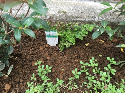 先日、植木屋さんに植えてもらった木・草花の中で、緑地帯に植えてもらったものの写真です^^ 正直、枯れ気味じゃない?wっていう草花も植えていかれましたが・・・w この先元気になるかな?^^ それぞれについてはまた記事を書こうと思いますが、とりあえず、何が植わっているか。 左から!・w・b ・コクリュウ ・オサマンサスデラバイ ・リッピア ・アジアンタム ・アガパンサス ・ベロニカ ・ロータス・ブリムストーン ・クランベリー ・リッピア ...