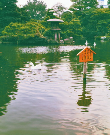 JUGEMテーマ:庭 「餌を与えた後の空袋は池の中に捨てないで屑篭にお入れください」と書いてある立て札?が、池の中から生えているというシュールな風景なのでございます。 普通は、どなたか有名な歌人さんの作品など一首、モノされるところなのでございましょうが。 アヒルさんやコイさんへの「餌遣り」が常態であったという証明がひとつ。 あくまでも、昭和40年代頃の絵でございますので、現在も「餌遣り」が認められているかどうかは、モノノケ館長の知ったことではございません。 あ? どうも、ご無礼を申し上げまし...