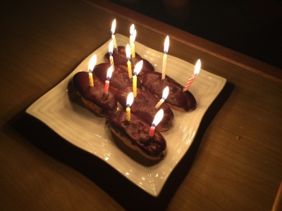 昨日は、私の誕生日。 めでたく、また1歳年を取りました。 で、昨日は、若干早めに帰宅。 そして、立川の焼肉屋さんに行き、おなか一杯食べました。 で、昨日はそれほどおなかがすいていなかったので、謙虚に食べさせていただきました(笑)。 そして、お家に帰ると「パパ!こっち来ないで!呼ぶまで来ちゃだめだよ!!」 なるほど、誕生日ケーキを用意しているのだな。 今年は、去年と違い、かなり高級なケーキを用意しているとか、、、、(笑)。 (ちなみに去年はミスタードーナツの「ドーナツ」を4つ重ねただけ(笑)。...