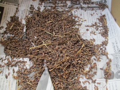 もうそろそろ籾蒔きの時期なので、保存しておいた稲穂から籾をはずした。 毎年少量なので手でやるのだが、痛くなる。 これは緑米。モチです。 JUGEMテーマ:無農薬の家庭菜園、農業、ガーデニング - 自然農