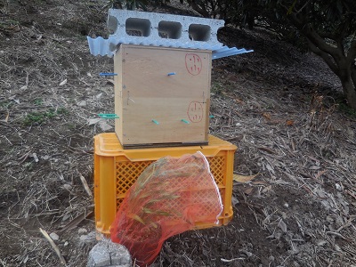 〜人と自然を結ぶ〜 日本ミツバチのクワザキです。 香川県・五色台産、100%天然ニホンミツバチのはちみつを通販でお届けしています。 ● さっそく分封したニホンミツバチが巣箱に入ってきました。 小さくてわかりにくいですが、ブンブンミツバチがとびまわっています。 今週からあたたかくなることをハチはよくわかっているんですね。
