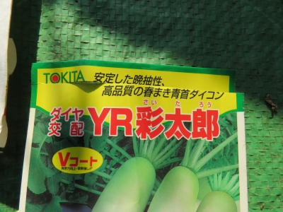 JUGEMテーマ:無農薬の家庭菜園、農業、ガーデニング - 自然農 品種 ■トキタ種苗 ダイヤ交配YR彩太郎 安定した晩抽性、高品質の春まき青首だいこん ●葉は濃緑色で中葉、葉数はやや多く立性です。 ●首色は濃緑色で、ひげ根が少なく肌の美しい品種です。 ●生育は早く根長36〜37cm、根径7〜8cmでよくそろいます。 ●抽苔は遅く、イオウ病、ウイルスの耐病性は強いほうです。 ●秋まきもできますが、冬、春まきの栽培に最適です。 ★2015年9月3日 種蒔き 昨年ハウス内で栽培し結果が良かったので今年もトマトの整理後ハウス...