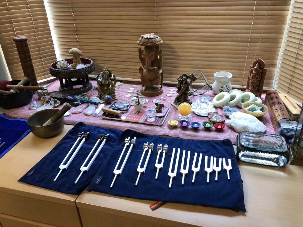 先日、音叉仲間でもあるSURYA body & mind awakening のれいなさんから交換セッションのお誘いを受け、彼女のサロンへ行ってきた。サロンはいわゆる神宮前、原宿の裏原エリア。最先端ファッションのショップ、アートギャラリー、その他個性的でお洒落なショップが並ぶ。でも全然ゴミゴミとしてる感じはなく、とても落ち着いた感じの街並みでゆっくり散策できるそんな雰囲気。そのエリアにある壁がレンガ造りのマンションに一角にサロンはあった。 サロンは建物も室内もすごくお洒落だった。単にお洒落な雰囲気...