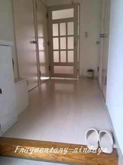 先月末、自分が仕事先の行事で一日家を空けている日に、玄関から上がって直ぐの廊下を張り直す工事をした。 トイレと浴室の度重なるアクシデントの為、またどうしても外から直ぐの場所の為、元々敷いてあった薄いグレイのカーペットがとても汚れてきていた。