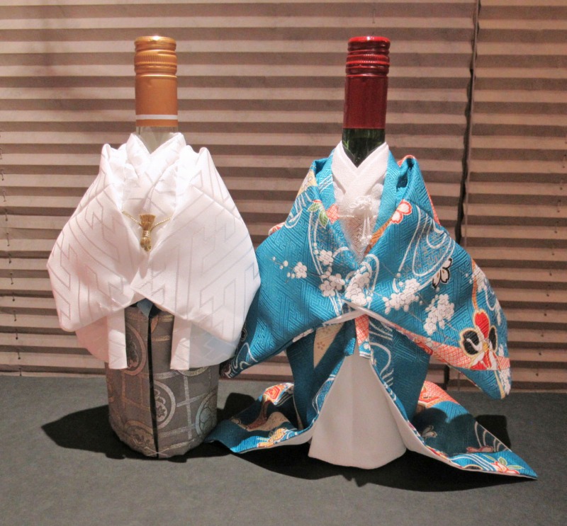 JUGEMテーマ:幸福に生きる JUGEMテーマ:和雑貨 JUGEMテーマ:プレゼント・贈り物・お祝い・内祝い・お礼にぴったりのアイテム JUGEMテーマ:地元のお店・ショップ・商店街 JUGEMテーマ:インテリア小物・雑貨 着物ボトルカバーに、色打掛セットが入荷しました。 今回は青い色打掛。 こちらの生地は人形用の生地なので、本物の打ち掛けのように、場所ごとの柄行きが丁度よい配置。 光の加減で水色に見えますが、光沢の深いところは夜明け前のような縹...