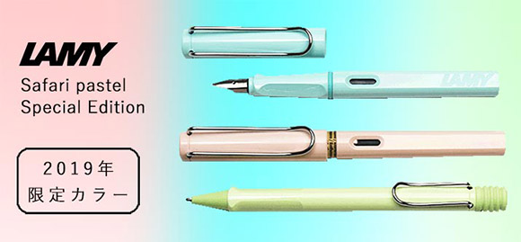 JUGEMテーマ:インテリア小物・雑貨 毎年ご好評をいただいておりますLAMY(ラミー)・サファリの限定モデルがいよいよ発売となりました。 2019年のラミー サファリ限定色は、心はずむパステル バレルとグリップのジョイントパーツや、ボールペンのノックのラバーなど、 細部までパステルトーンでコーディネートされた今までにないスペシャルエディション。 パウダーローズ・ミントグリーン・ブルーマカロン、3色同時に登場です。 &nbs...
