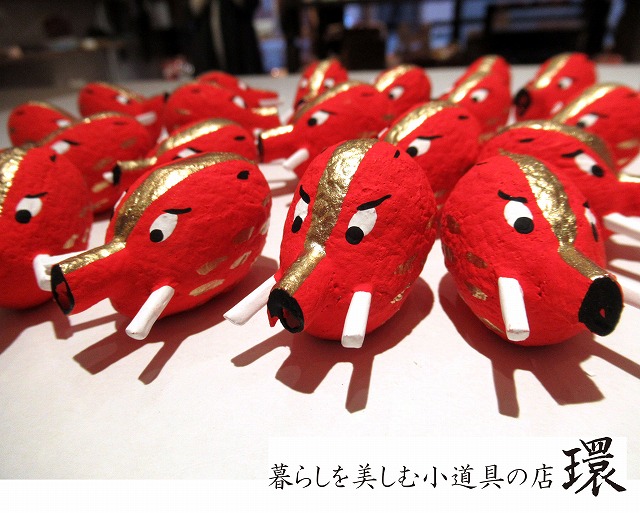 JUGEMテーマ:インテリア小物・雑貨 JUGEMテーマ:和雑貨 昨日に引き続き、まゆ玉人形。 今年から、まゆ玉の亥に「赤亥」が仲間入り。 赤に金彩模様。おめでたい感じ。 赤いだけで、猪突猛進感がいや増しますよね。 亥、いのしし。 動物が当て込まれているから、つい動物の特徴を引いて考えがちですが、動物と干支はそれほど関係がある訳ではないそうですね。だから、亥年だからと、目標達成に向けて突き進め!というイメージでもないそうな。 亥の年は、十二支の最後ということで、次に移るため...