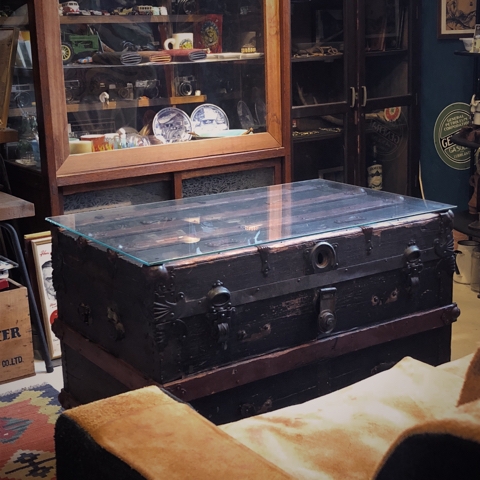 先日届いた古い木箱ですが、ガラスの天板を組み合わせてコーヒーテーブルになりました。 オイルを塗ったり少々メンテナンスをしたところ、重厚感は増えたものの、少々ギャラリースペースが狭くなった印象です。 まあでもテーブルが広くなったので打ち合わせもしやすそうだし、しばらくこんな感じでいきたいと思います。ソファー席で珈琲飲んでゆっくりして下さい。⇒ ギャラリースペースについて GALLON http://www.gallon.jp (ガロン / 革製品、革小物、真鍮アクセサリー...