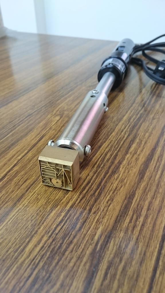 JUGEMテーマ:インテリア小物・雑貨 いよいよ展示会の準備も佳境です。 思ってたものすべてを用意することは間に合いそうにありませんが、社員みな頑張ってくれて、素敵なものが展示できます。 本当に感謝です。 その商品につけるタグをどうしよう・・・と考えていたのですが、革に焼き印が素敵では・・・と思い、焼き印をオーダーしました。 それがあがってきて早速使ってみました。 まずは道具はこちらです↓ 25ミリ角ほどの小さな真鍮のブロックにうちの...