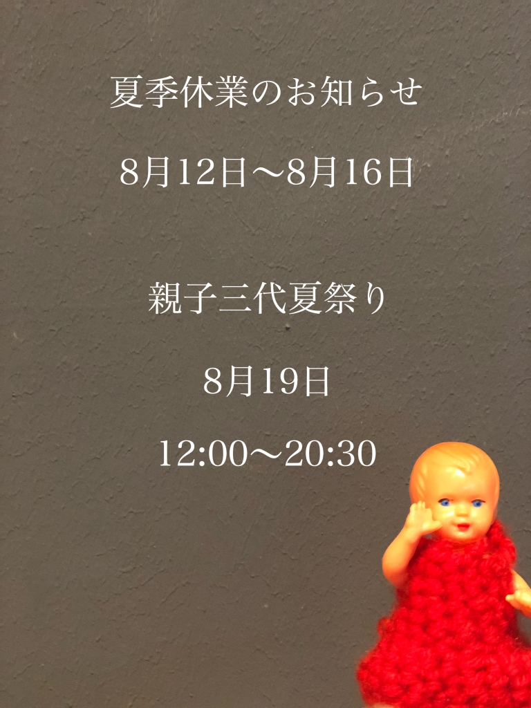 JUGEMテーマ:インテリアデザイン JUGEMテーマ:日用品・雑貨 JUGEMテーマ:家具(ファニチャー) JUGEMテーマ:飲み物 JUGEMテーマ:インテリア小物・雑貨 こんにちは ヴィンテージ家具と雑貨とコーヒーのお店 チッタ・マテリアルの吉田です。 本日は早速ですが、休業日のご案内をさせて頂きます。 誠に勝手ながら下記日程を当店の夏季休業とさせて頂きま...