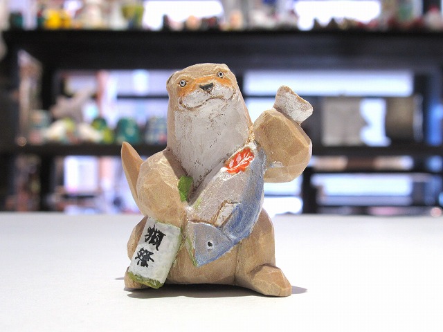 JUGEMテーマ:和雑貨 JUGEMテーマ:インテリア小物・雑貨 風祭美彩さんの新作到着。 店主、寝る間際に動物の動画を見て、癒やされているのですが、「かわうそ」が魚を掴む前足の様子など、可愛いな・・・と気がついてしまい、美彩さんに彫ってもらいました。 かわうそが獲った獲物を並べて置くというのを見て、きっとご先祖様にお供えでもしているのだろうかと妄想したのでしょう。 獺かわうそが祭(祀)る、で獺祭だっさい。 唐の詩人が「獺祭魚」と号したこと...