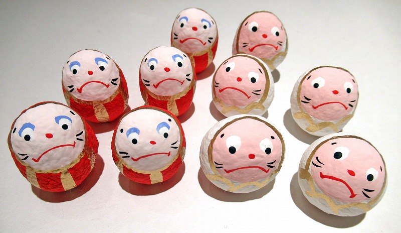 JUGEMテーマ:和雑貨 JUGEMテーマ:インテリア小物・雑貨 甥っ子が、もうじき公立高校の受験だそうです。 彼が行きたい学校に受かるといいな〜と神頼み中。 受験生がいる家庭は、どちら様も落ち着かないことでしょうね。どちら様も、努力が報われ、望んだ進路に進めますように! そして、受験とくれば、新学期。 新学期の辺りになると、1年の目標を掛けるべく「だるま」を探しに来る方が少々増えます。 当店、お雛様が終わると、だるまの季節なんです。 「そういえば、まゆ玉人形の新作で、だるまが出...