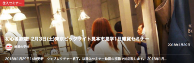 雑貨の学校関連のセミナーのご案内です。締切間近! 雑貨の学校の1日雑貨セミナー 「雑貨仕入/見本市訪問」 講師と巡る大型見本市。レクチャー付き。初心者歓迎! ギフト・ショー公式セミナー 「店作りと運営、業界入門」 2,800名様が受講の決定版セミナー。新人からベテランまで為になる! JUGEMテーマ:ビジネス JUGEMテーマ:インテリア小物・雑貨 雑貨の学校は99年スタートの東京下北沢を中心に開催している初め...
